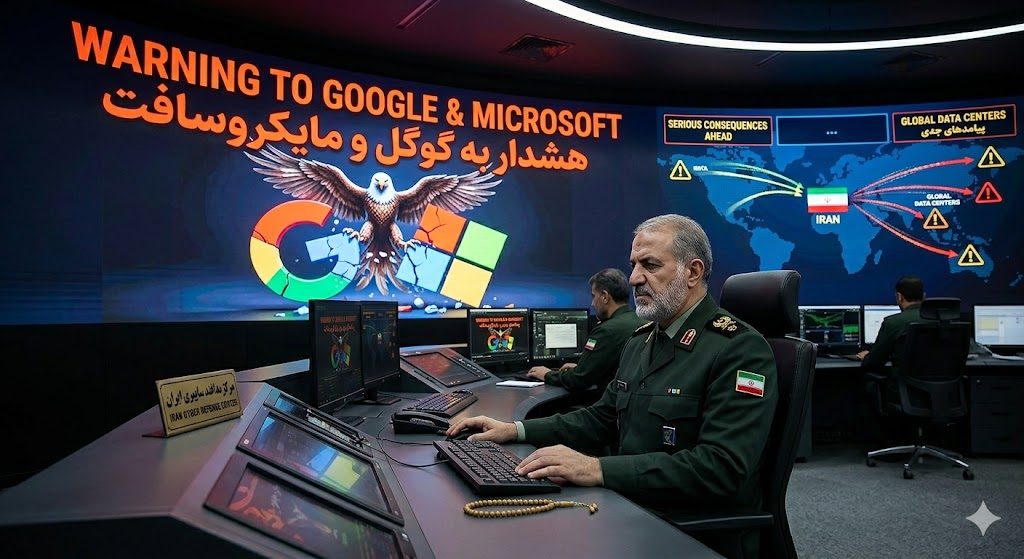 ईरान ने गूगल और माइक्रोसॉफ्ट को दी सनसनीखेज चेतावनी: “दुश्मन की तकनीकी इंफ्रास्ट्रक्चर” बताकर बनाया निशाना – पूरी घटना, खतरा और भारत पर असर