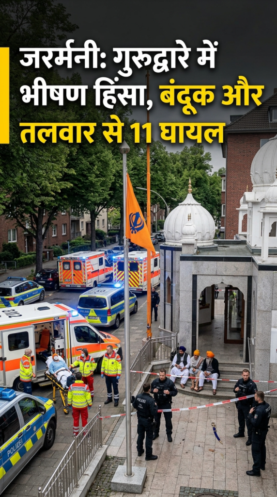 जर्मनी के एक गुरुद्वारे में रविवार सुबह अचानक हिंसक झड़प हो गई। बंदूक, कृपाण और मिर्च स्प्रे का इस्तेमाल हुआ। इस घटना में 11 लोग घायल हो गए। पुलिस ने तुरंत मौके पर पहुंचकर स्थिति को काबू में किया।