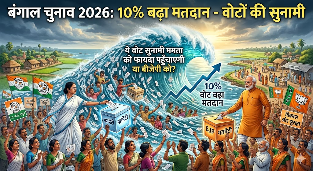 पश्चिम बंगाल में चुनावी माहौल पूरी तरह गरम है। इस बार मतदान में पिछले चुनावों की तुलना में करीब 10% की बढ़ोतरी हुई है। यह आंकड़ा काफी बड़ा है और राजनीतिक पार्टियों के लिए नया ट्विस्ट लाया है। अब सवाल यह है कि इतने ज्यादा वोट किसके पाले में जाएंगे – ममता बनर्जी की तृणमूल कांग्रेस (TMC) या भाजपा?