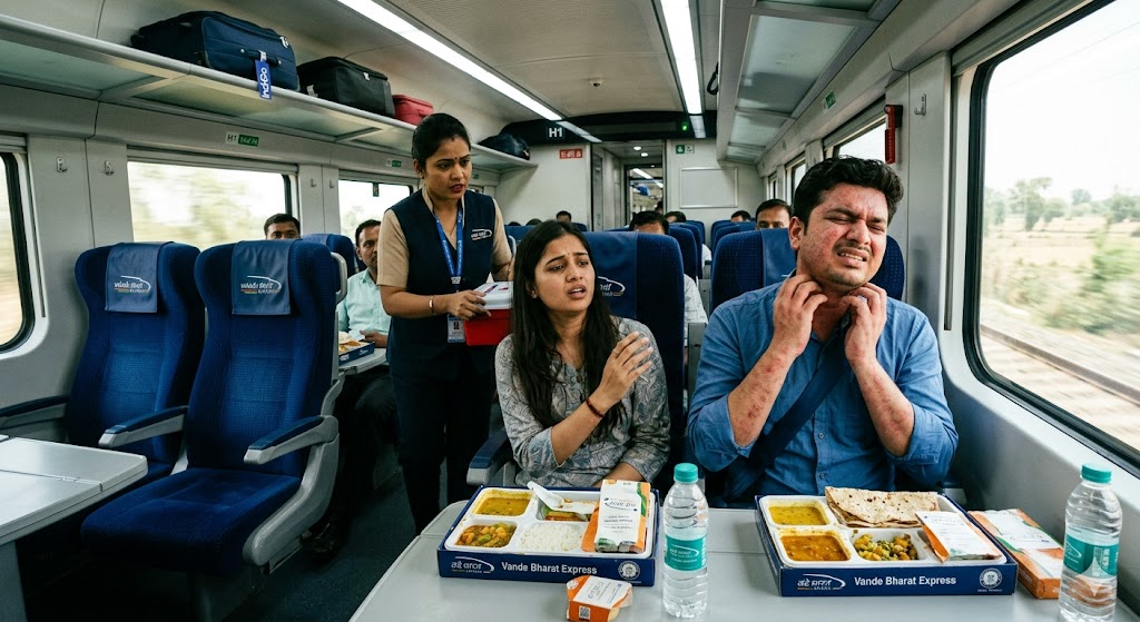 वंदे भारत में खाना खाकर महिला यात्री को हुई गंभीर एलर्जी: होंठ सूजे, बच्चे को दस्त – IRCTC का जवाब और पूरी सच्चाई